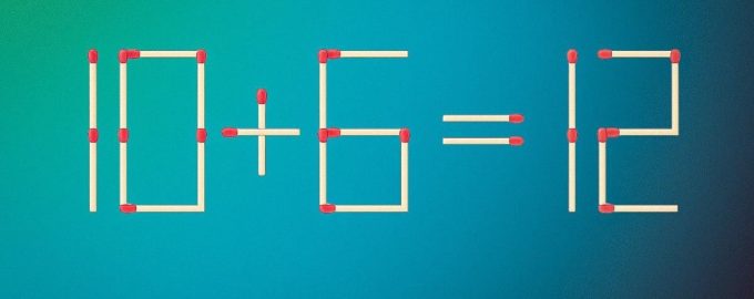 Nedan ser du en bild där likheten 10+6=12 är utlagd med hjälp av tändstickor. Uppenbarligen är det inte matematiskt korrekt. Du måste korrigera den.