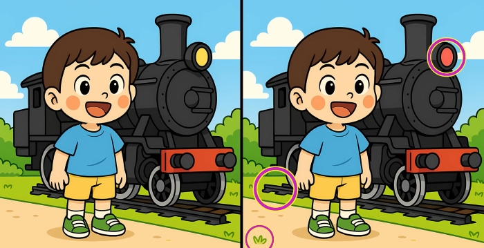 Så, är du redo för nästa utmaning? Ta en närmare titt på de två bilderna av pojken som står bredvid ångtåget. De kan se identiska ut vid första anblicken, men det finns 3 små skillnader. Tror du att du kan hitta dem alla på 29 sekunder? Prova och testa din synskärpa!
