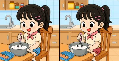 Så, är du redo för nästa utmaning? Ta en närmare titt på två bilder av en flicka som knådar kaksmet. De kan se identiska ut vid första anblicken, men det finns 3 små skillnader. Tror du att du kan hitta dem alla på 51 sekunder? Prova och testa din visuella skärpa!