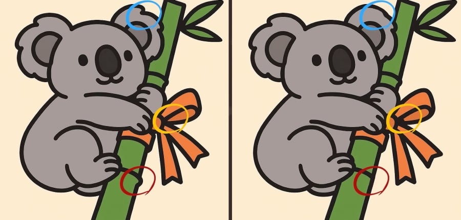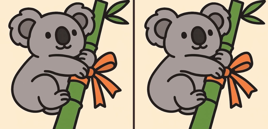 Så, är du redo för nästa utmaning? Ta en närmare titt på de två bilderna av en koala som kramar bambu. De ser kanske likadana ut vid första anblicken, men det finns 3 små skillnader. Tror du att du kan hitta dem alla på 33 sekunder? Prova och testa din visuella skärpa!