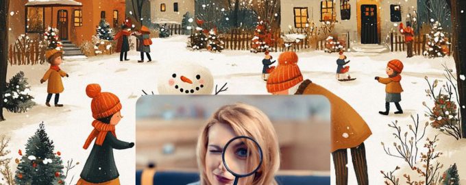 Var uppmärksam på mannen nära snögubben. Han skyfflar snö, men av någon anledning använder han en högaffel istället för en spade. Inte det klokaste beslutet, eller hur?